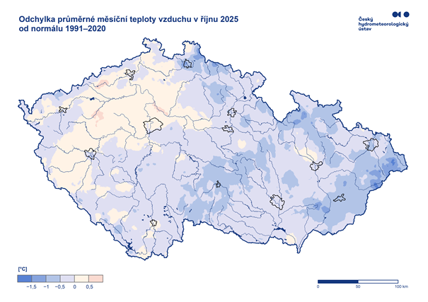 Měsíční zpráva Počasí, voda a ovzduší v ČR – řjení 2025: Počasí, voda a ovzduší v ČR - říjen 2025.