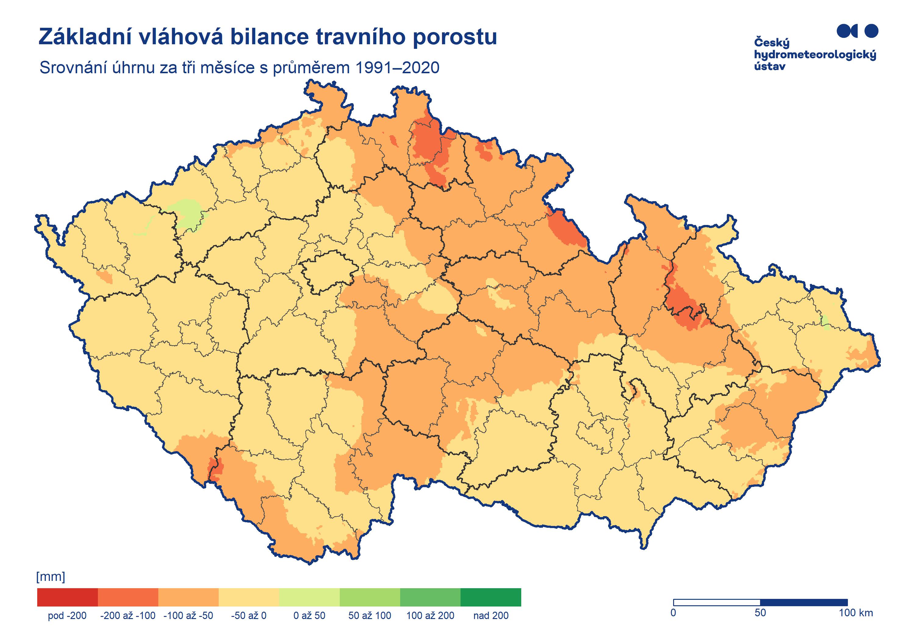 | Základní vláhová bilance, modelové hodnoty | Základní vláhová bilance - dlouhodobé srovnání, modelové hodnoty | Aktuální vláhová bilance, vybrané oblasti, modelové hodnoty | ||