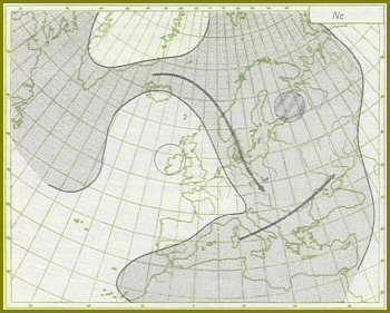 Výškové tlakové pole situace je vždy tvořeno řídící cyklónou nad Finskem a severozápadní částí SSSR a cyklónou v severozápadní části Atlantického oceánu. Mezi nimi se rozkládá mohutný hřeben vysokého tlaku probíhající od Azor přes Britské ostrovy na Grónsko a Grónské moře. V hřebenu se obvykle vytváří samostatné jádro vyššího tlaku se středem v oblasti Irska. Při zemi někdy zasahuje tato anticyklóna svým výběžkem k jihovýchodu přes Francii a Bavorsko až nad Maďarsko. Za tohoto rozložení tlakových útvarů probíhá frontální zóna z Norského moře přes Kattegat do střední Evropy. Vchod frontální zóny bývá na sever od Islandu, delta obyčejně ústí do oblasti nižšího tlaku na Balkáně. Do této frontální zóny pronikají jednotlivé frontální vlny z atlantské cyklóny Dánským průlivem. V jejím vchodu se vlivem studeného vzduchu, přiváděného od severu, aktivizují a postupují do střední Evropy, kde okludují a zanikají ve výběžku vysokého tlaku nad Alpami. V některých případech proniká studený vzduch za okluzemi až do oblasti nízkého tlaku nad Středozemní moře, kde oživuje cyklonální činnost v nevýrazné frontální zóně probíhající od Sardinie přes jižní Rumunsko na Azovské moře. Severní cyklonální situace se vyskytuje po celý rok s výrazným minimem na konci léta a výrazným maximem na konci zimy.
