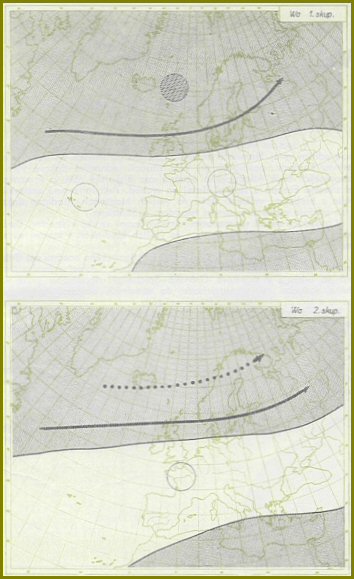 Při této situaci řídící cyklóna setrvává v prostoru mezi Grónskem, Islandem a severozápadním pobřežím Norska. Oblast vyššího tlaku se rozprostírá od Azorských ostrovů přes Biskajský záliv nad Francii a odtud do střední Evropy s výběžkem často na Balkán, Černé moře a jižní Ukrajinu. Naše území leží na jejím severním okraji. V uvedeném pásmu vyššího tlaku se tvoří samostatné anticyklonální středy nad Azorskými ostrovy a ve střední Evropě jižně od 50. rovnoběžky. Frontální zóna přechází z mírných šířek Atlantického oceánu přes Skotsko, jižní Skandinávii a Baltické moře nad jižní Finsko a směřuje dále na severovýchod. Teplé fronty postupující z oceánu na pevninu přechází severně od našeho území a jen jejich okraje zasahují severní pohraniční oblasti naší republiky. V poslední den této situace přechází celým naším územím studená fronta, uzavírající období tohoto typu situace. Druhá skupina Wa situace je charakterizovaná pohyblivou cyklónou. V průběhu období se přesouvá z okolí Islandu přes Norské moře do severní části Skandinávie, Finska a nad poloostrov Kola. Oblast vysokého tlaku zůstává nad celou jižní polovinou Evropy, anticyklonální střed se však vysunuje z Azorských ostrovů nad Francii. Případu ze stacionární cyklónou je přibližně 40 %, s pohyblivou tlakovou níží 60 %. Západní anticyklonální situace se vyskytuje nejčastěji v létě a na podzim, zřídkakdy bývají na jaře.