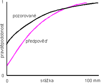 Základním principem při statistickém postprocessingu QPF je vyhodnocení úspěšnosti historických QPF za účelem získání pravděpodobnostního rozložení chyby předpovědi. Vyhodnocení předpovědí srážek je komplikováno nespojitým charakterem výskytu srážek. Proto se musí skládat ze dvou kroků. Prvním z nich je vyhodnocení úspěšnosti předpovědi výskytu samotných srážek, druhým pak vyhodnocení úspěšnosti předpovědi množství vyskytnuvších se srážek. Meteorologické modely mají obecně tendenci nadhodnocovat výskyt srážek a malé srážkové úhrny a naopak většinou podhodnocují srážkové extrémy. Porovnání typických kumulovaných pravděpodobnostních funkcí velikosti pozorované a předpovídané srážky vypadá jako na následujícím obrázku.