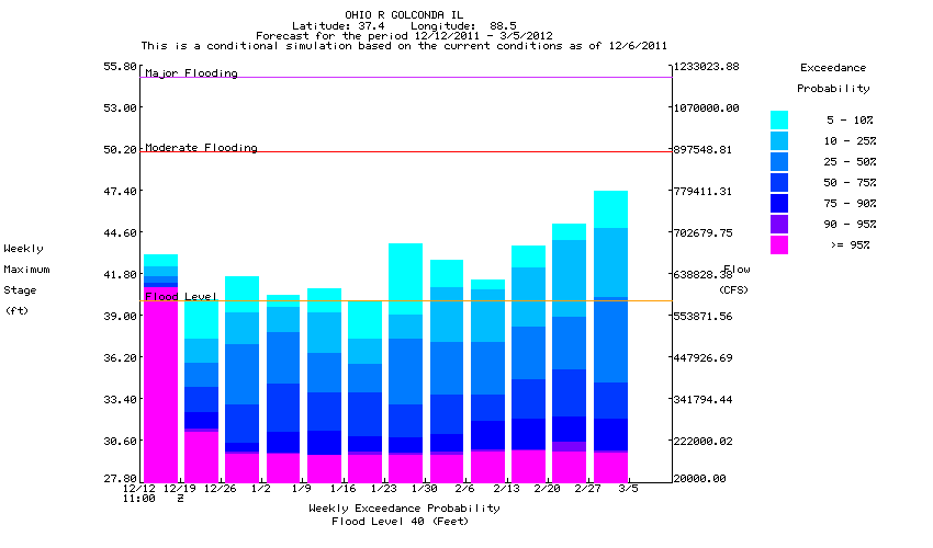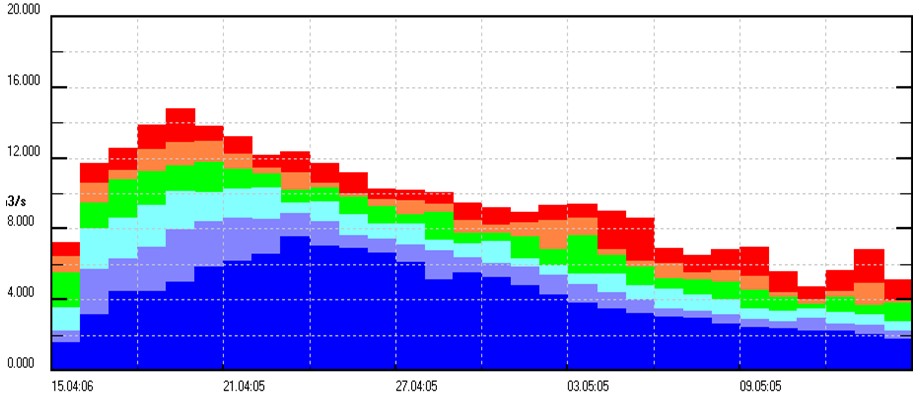 Sloupcový graf – používá se pro střednědobé pravděpodobnostní předpovědi. Vyznačuje pravděpodobnost překročení průměrného průtoku za určitý časový interval. Tento interval je delší než časový krok výpočtu modelu.