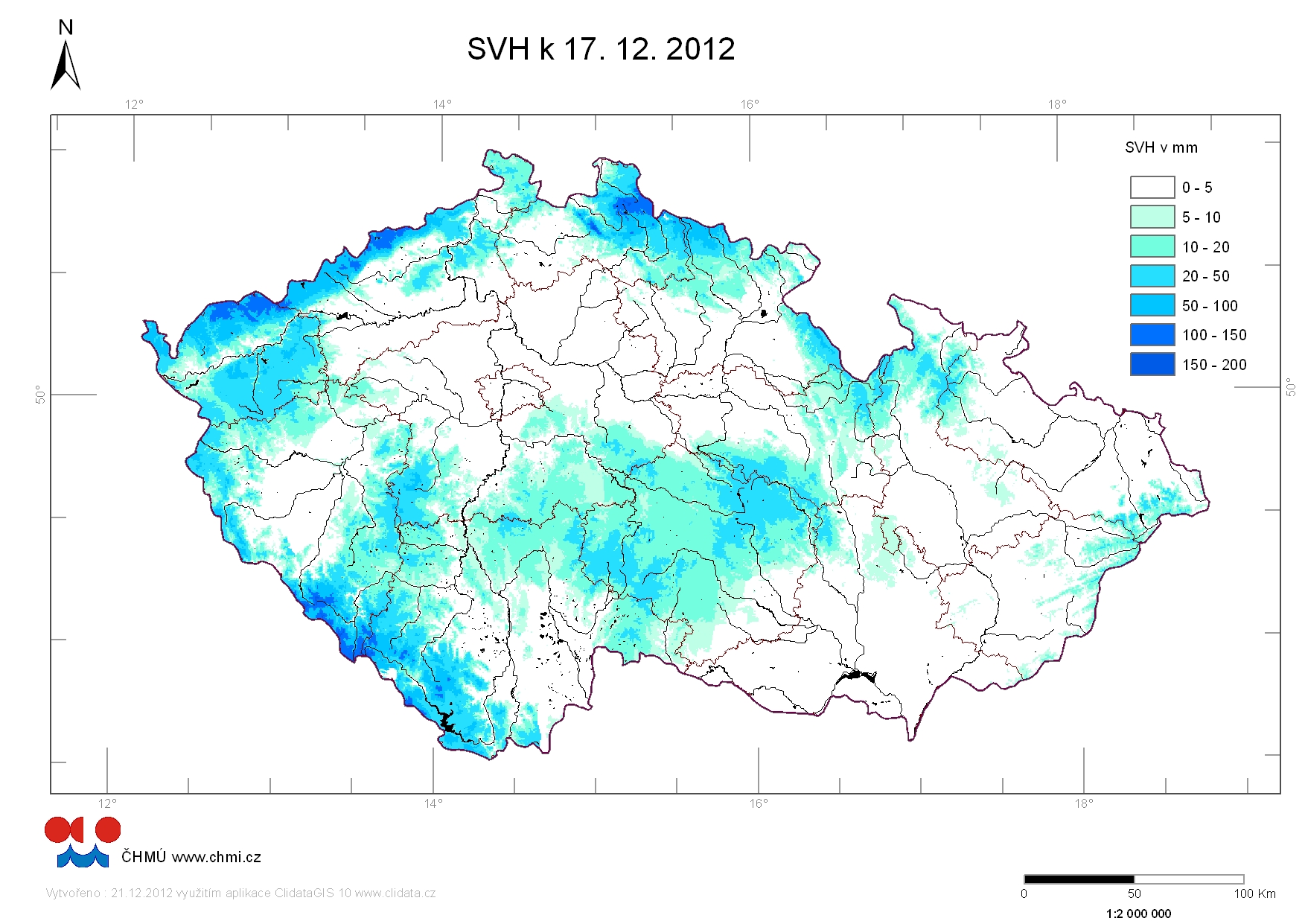 | Zásoby vody ve sněhu 17.12.2012 |