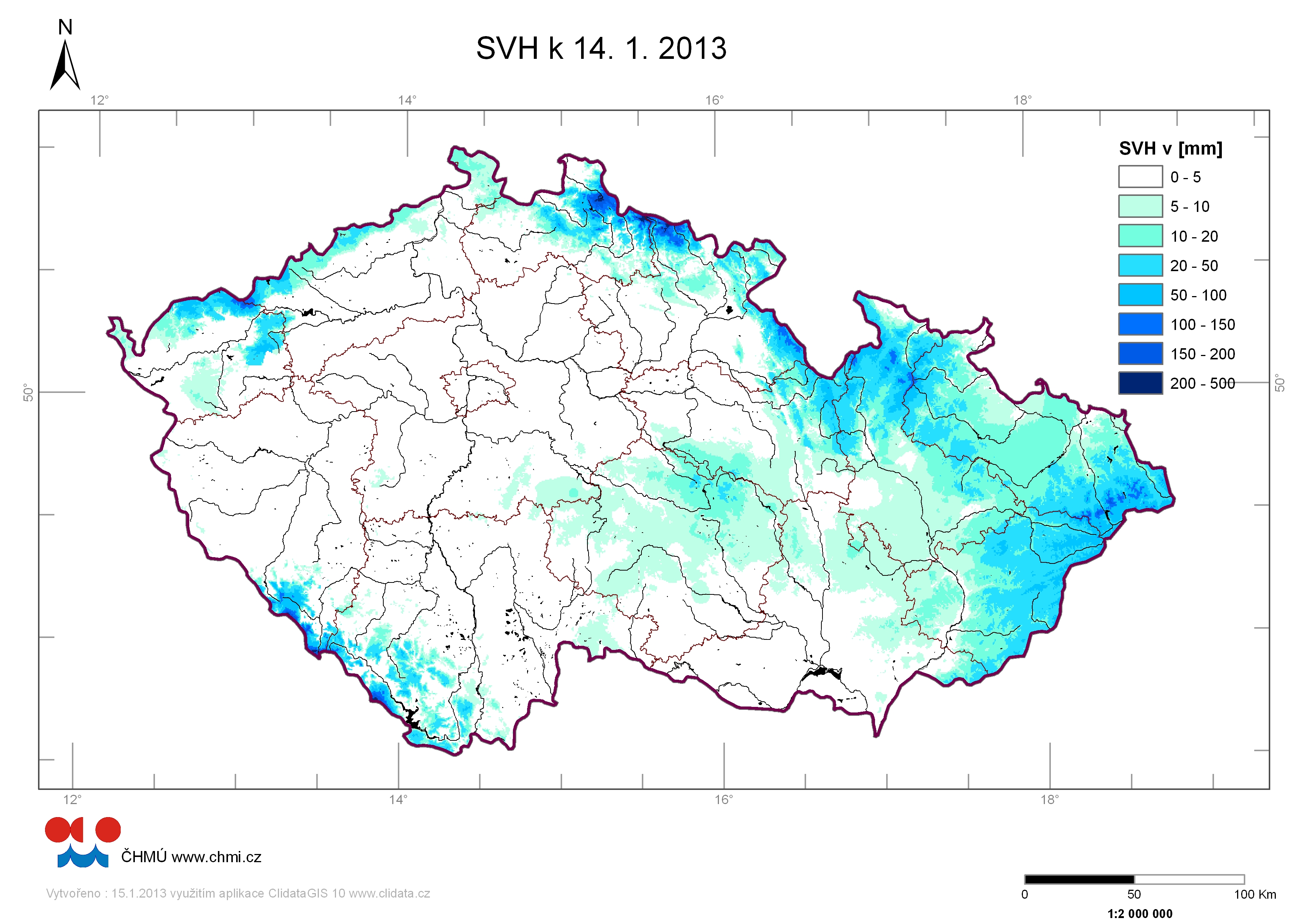 | Zásoby vody ve sněhu 14.01.2013 |