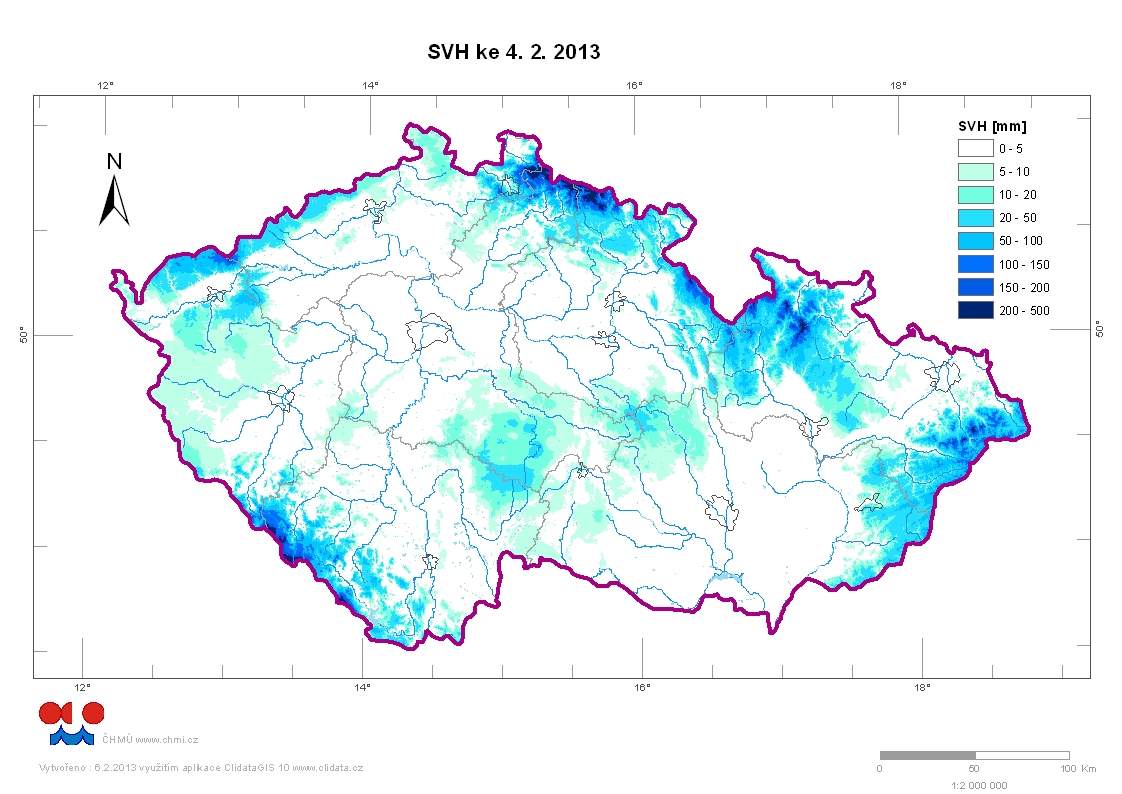Vyhodnocení sněhových zásob, tedy výšky sněhu a především jeho vodní hodnoty (SVH) se provádí jednou týdně vždy k pondělnímu ránu. Podkladem jsou měření v síti měřicích stanic ČHMÚ a doplňkových měření poskytovaných s. p. Povodí. Sněhové zásoby jsou uváděny v odpovídajícím množství vody vázané ve sněhové pokrývce. Odhad celkového množství sněhových zásob na území ČR ke 4. 2. 2013 činí cca 1,00 miliardy m3, což představuje v průměru cca 12,7 mm (12,7 litry na jeden metr čtvereční).