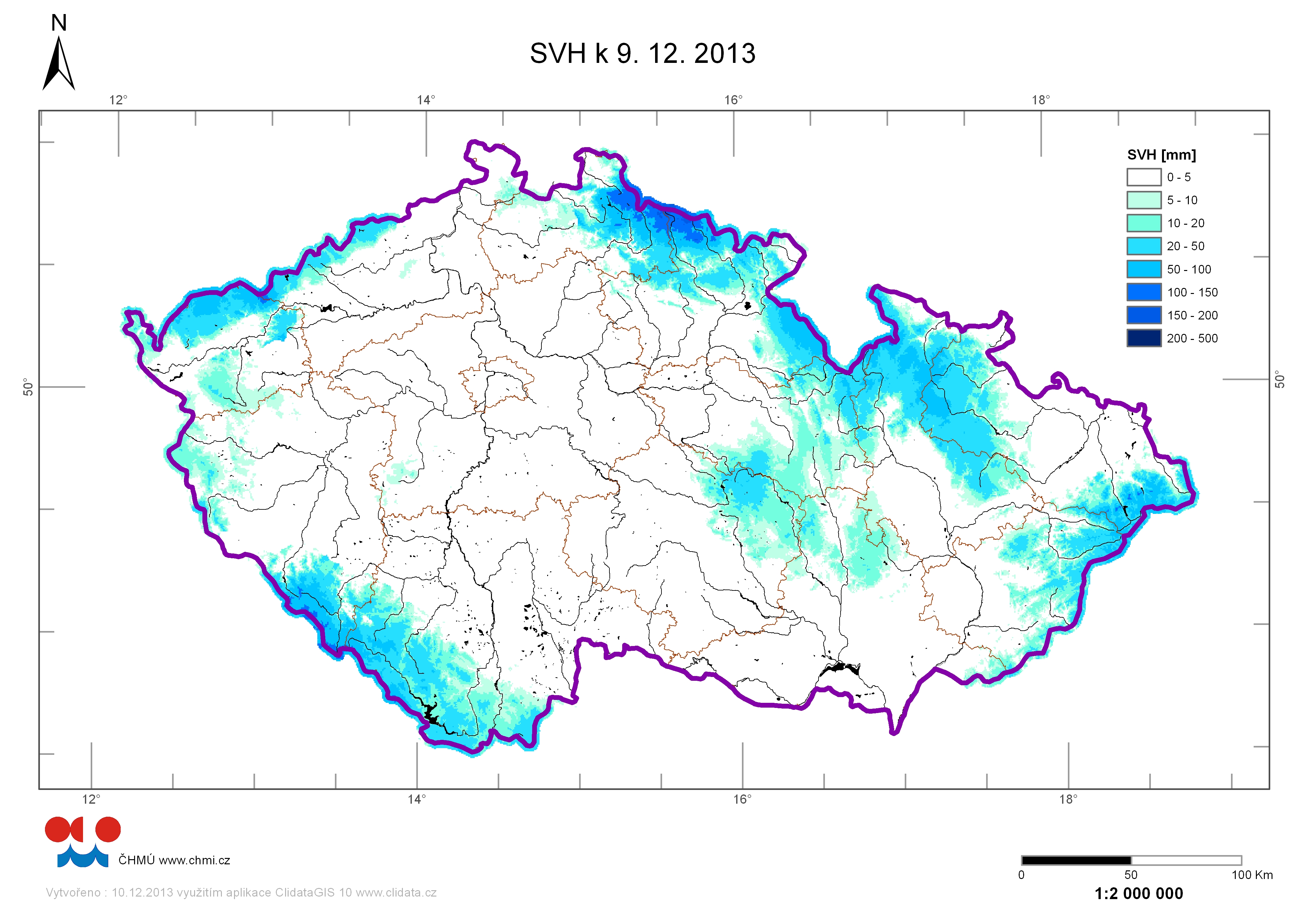 | Zásoby vody ve sněhu 09.12.2013 |