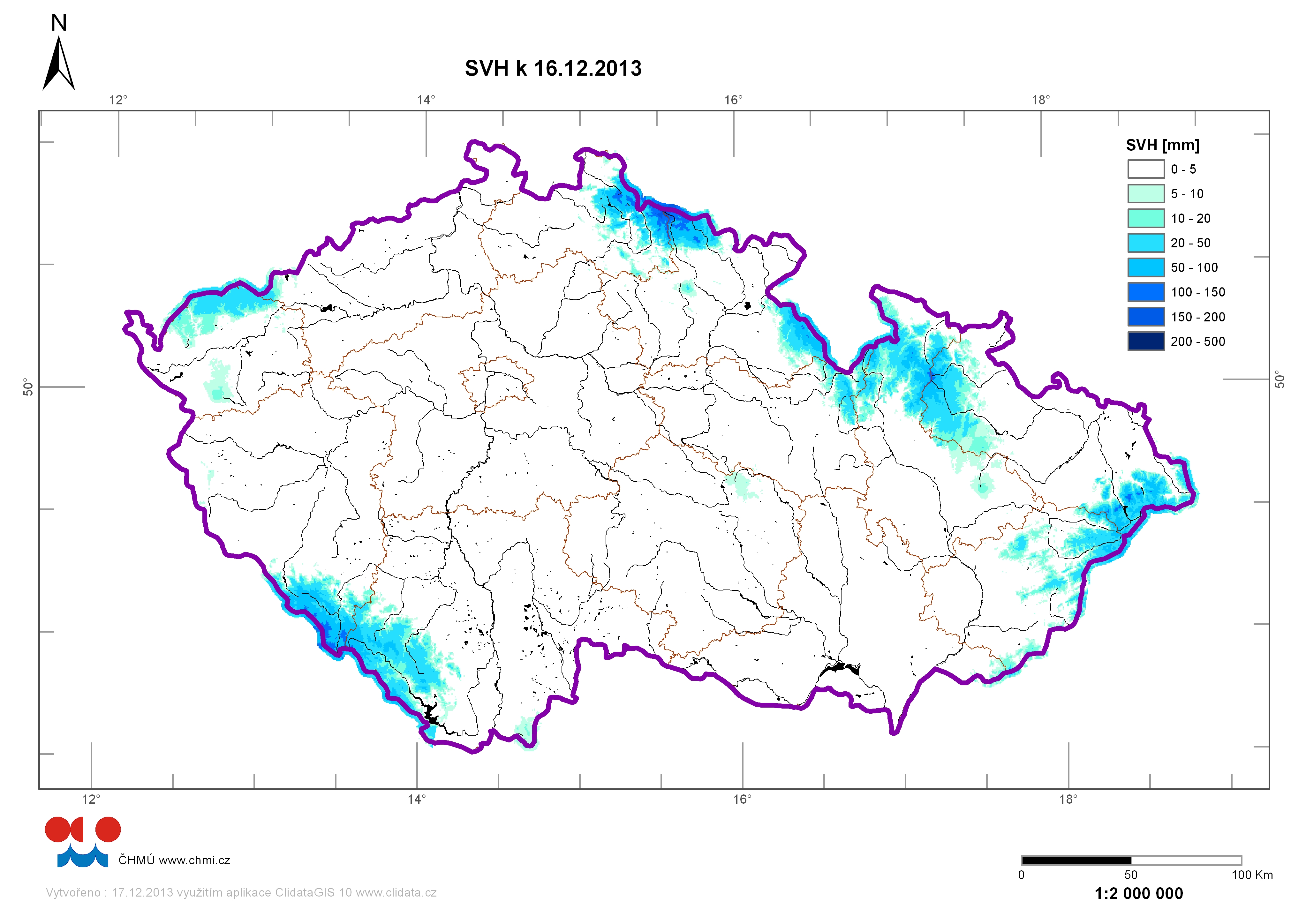 | Zásoby vody ve sněhu 16.12.2013 |