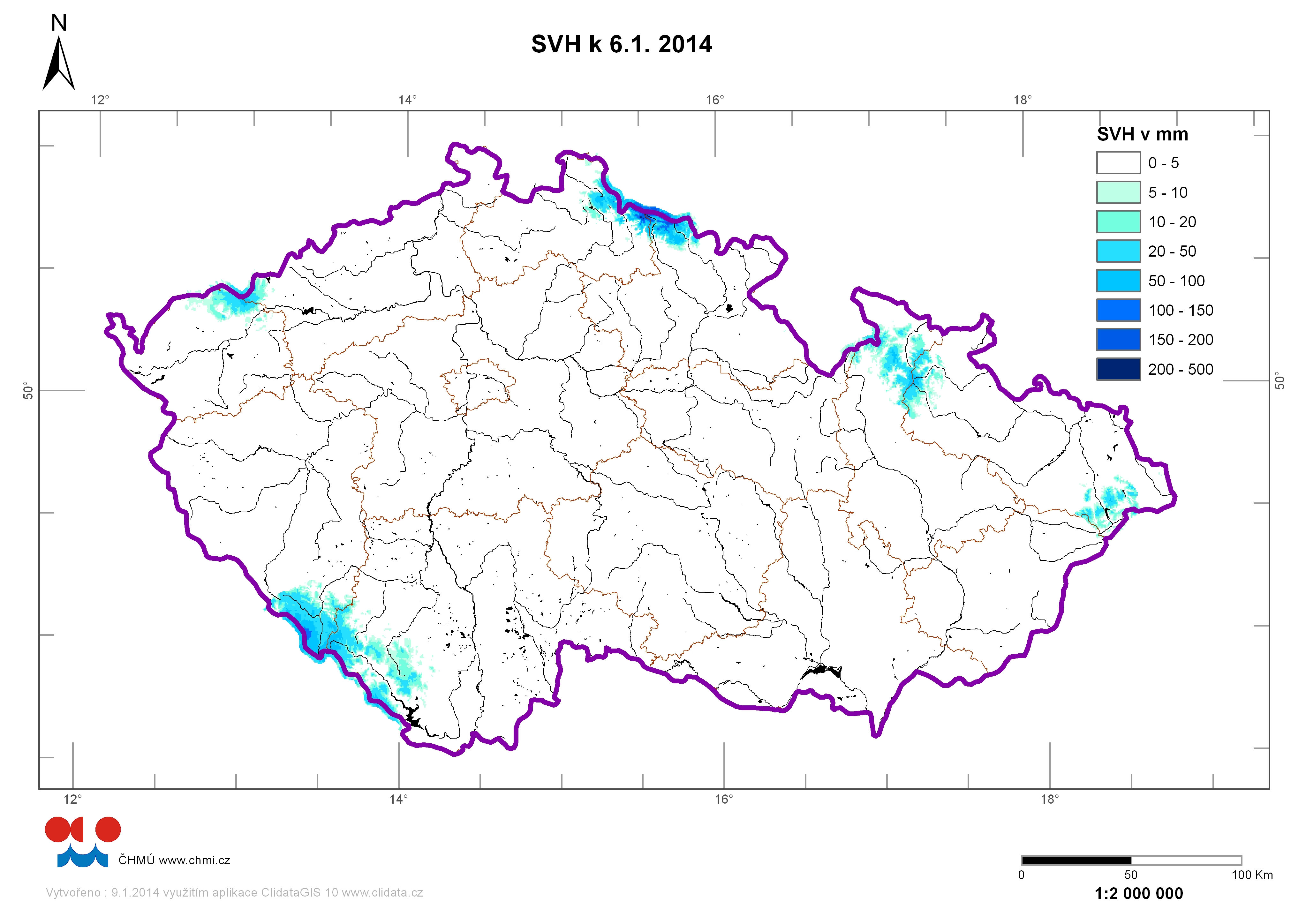 | Zásoby vody ve sněhu 06.01.2014 |