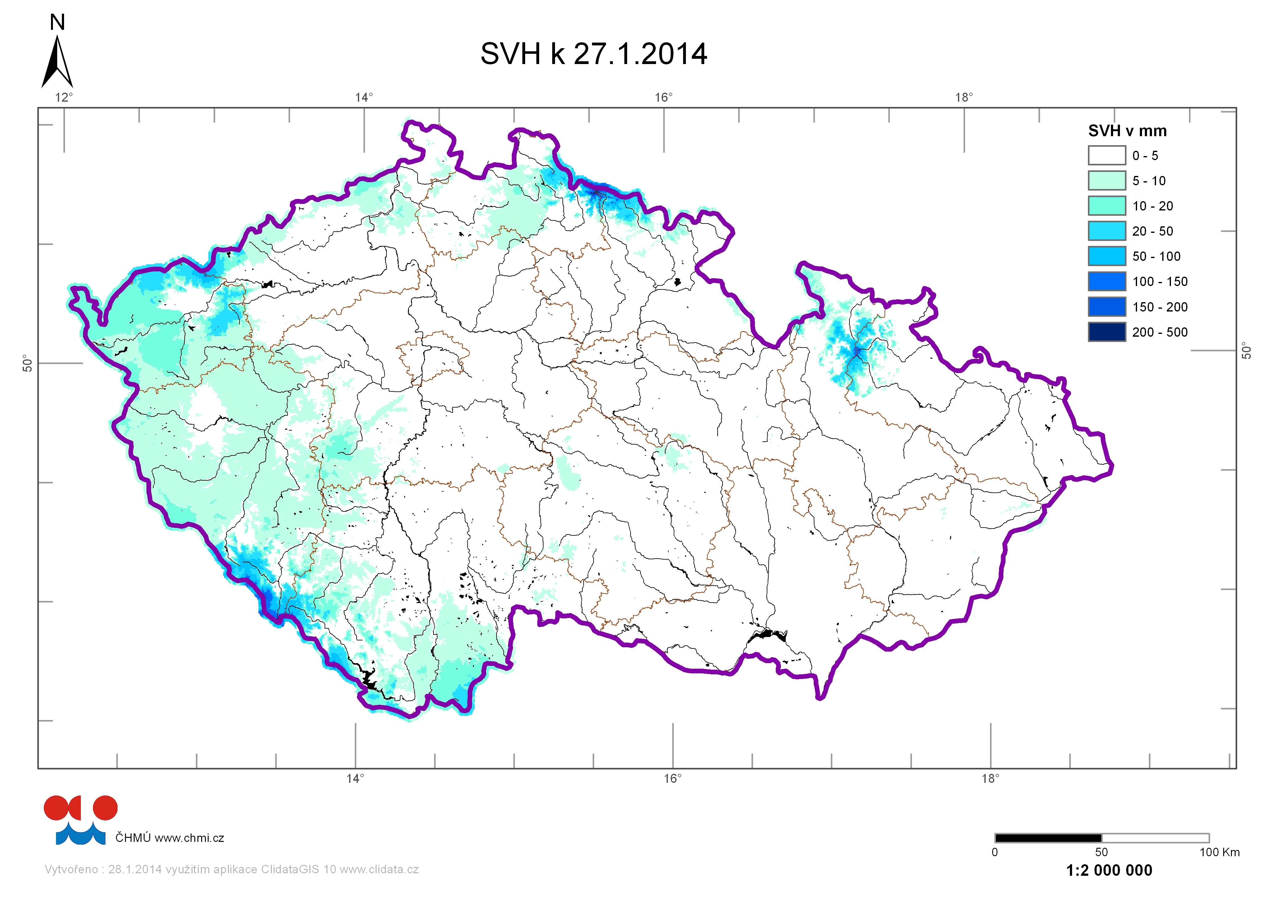 | Zásoby vody ve sněhu 27.01.2014 |