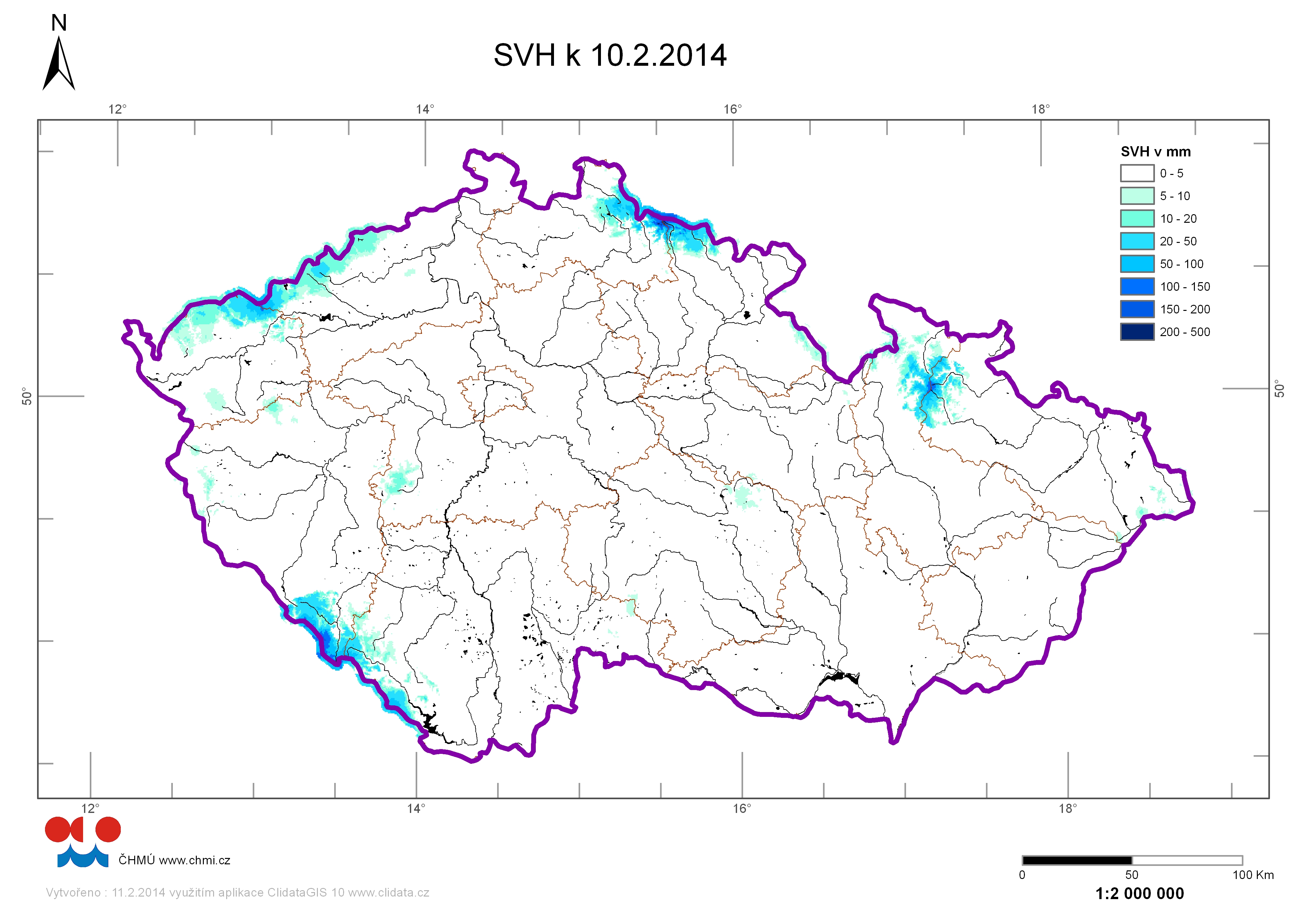 | Zásoby vody ve sněhu 10.02.2014 |
