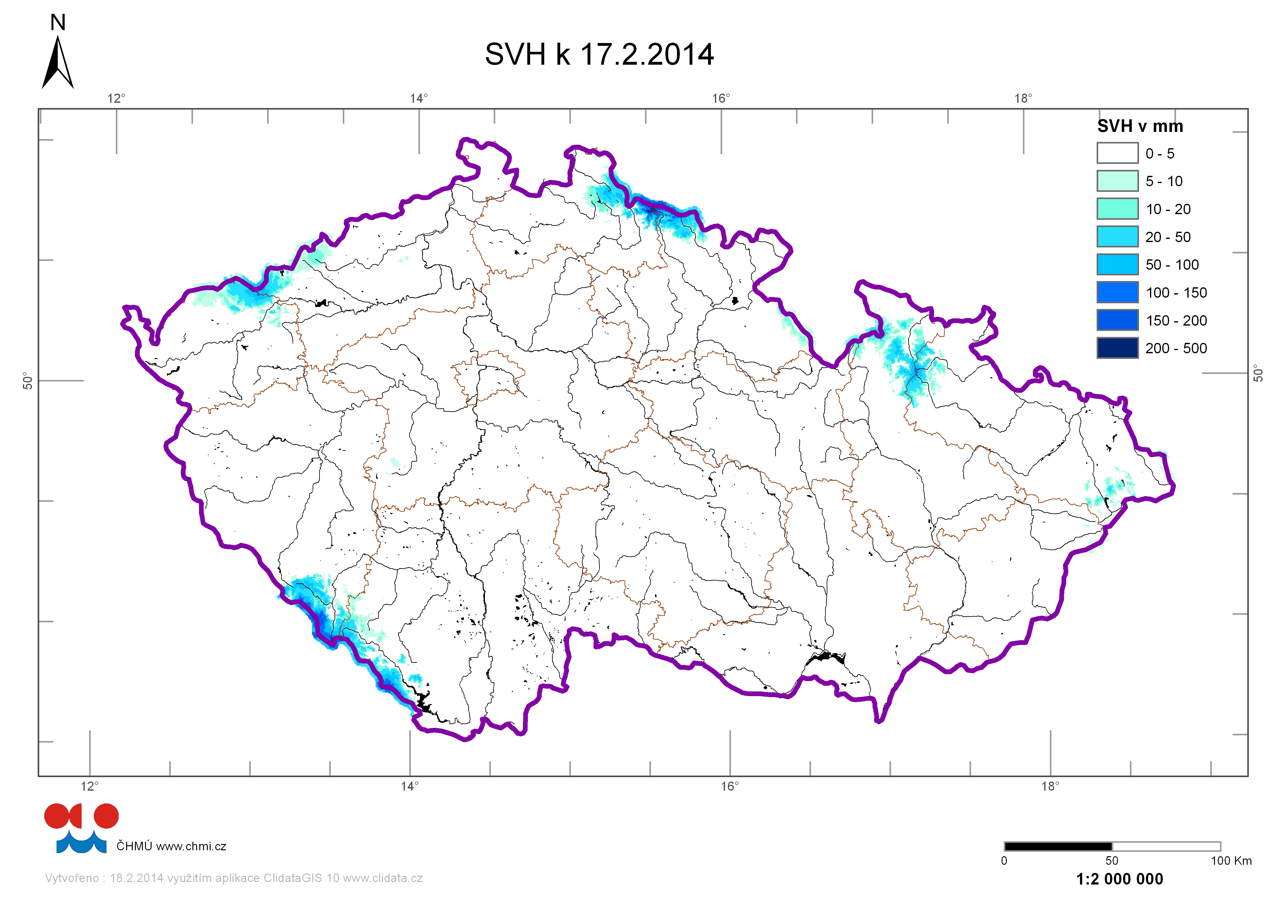 | Zásoby vody ve sněhu 17.02.2014 |