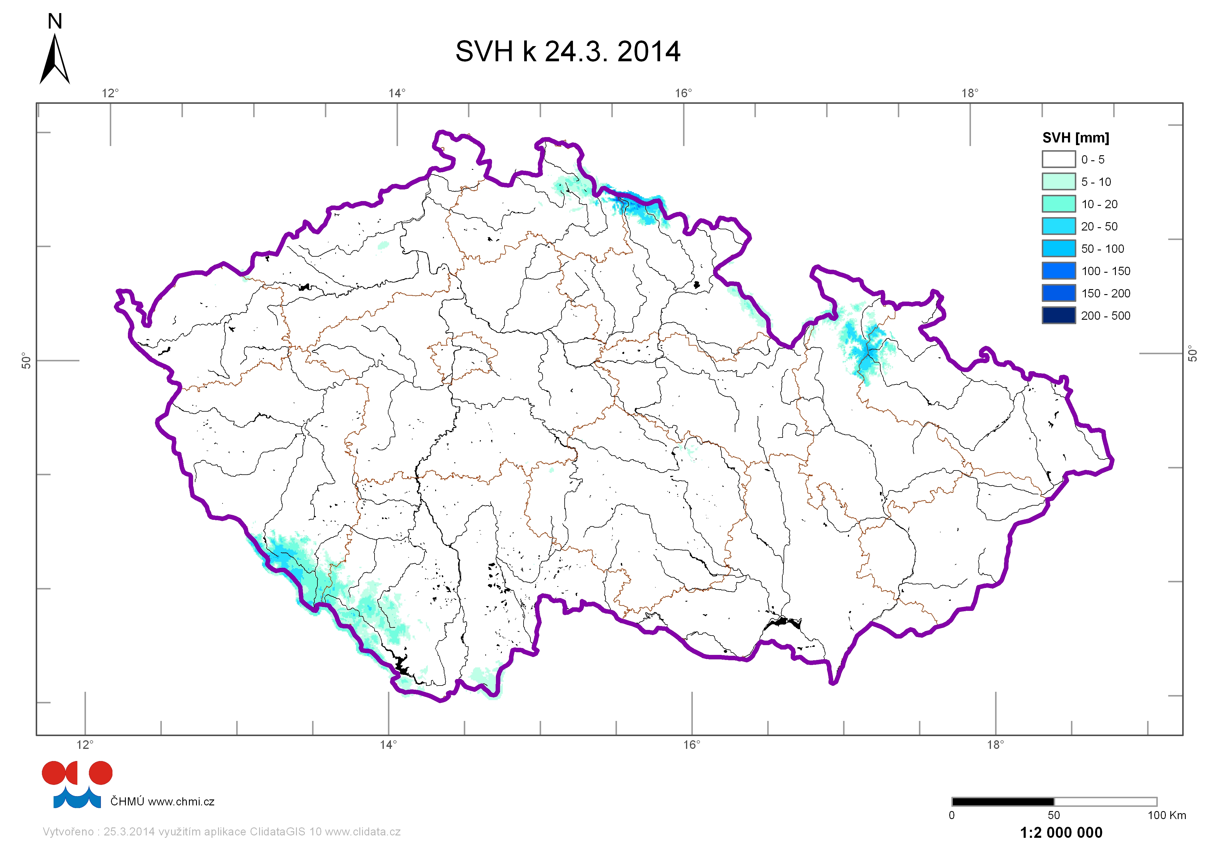 | Zásoby vody ve sněhu 24.03.2014 |