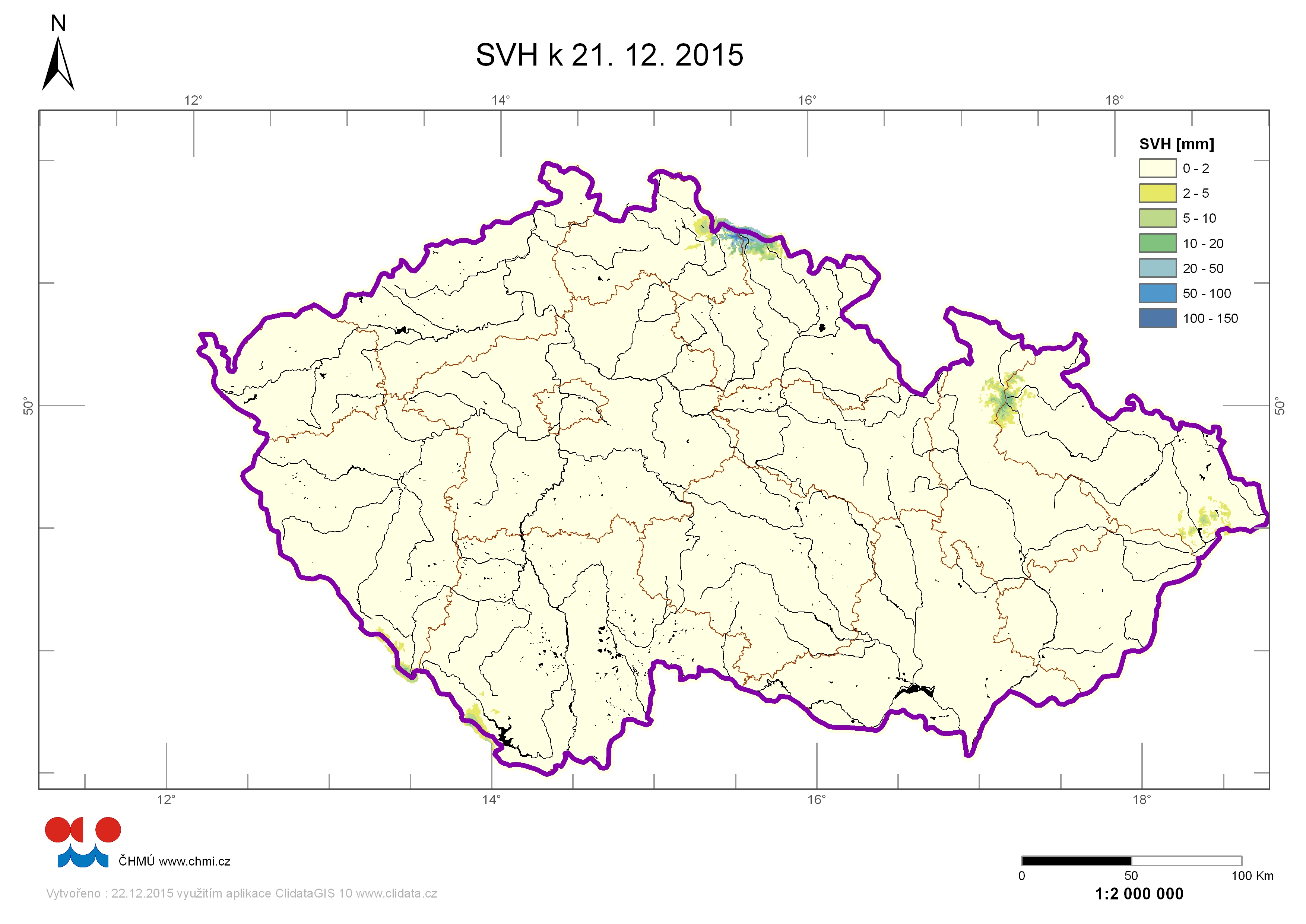 Odhad celkového množství sněhových zásob na území ČR k 21. 12. 2015 činí cca 0,008 miliardy m3, což představuje v průměru cca 0,1 mm (0,1 litru na jeden metr čtvereční).