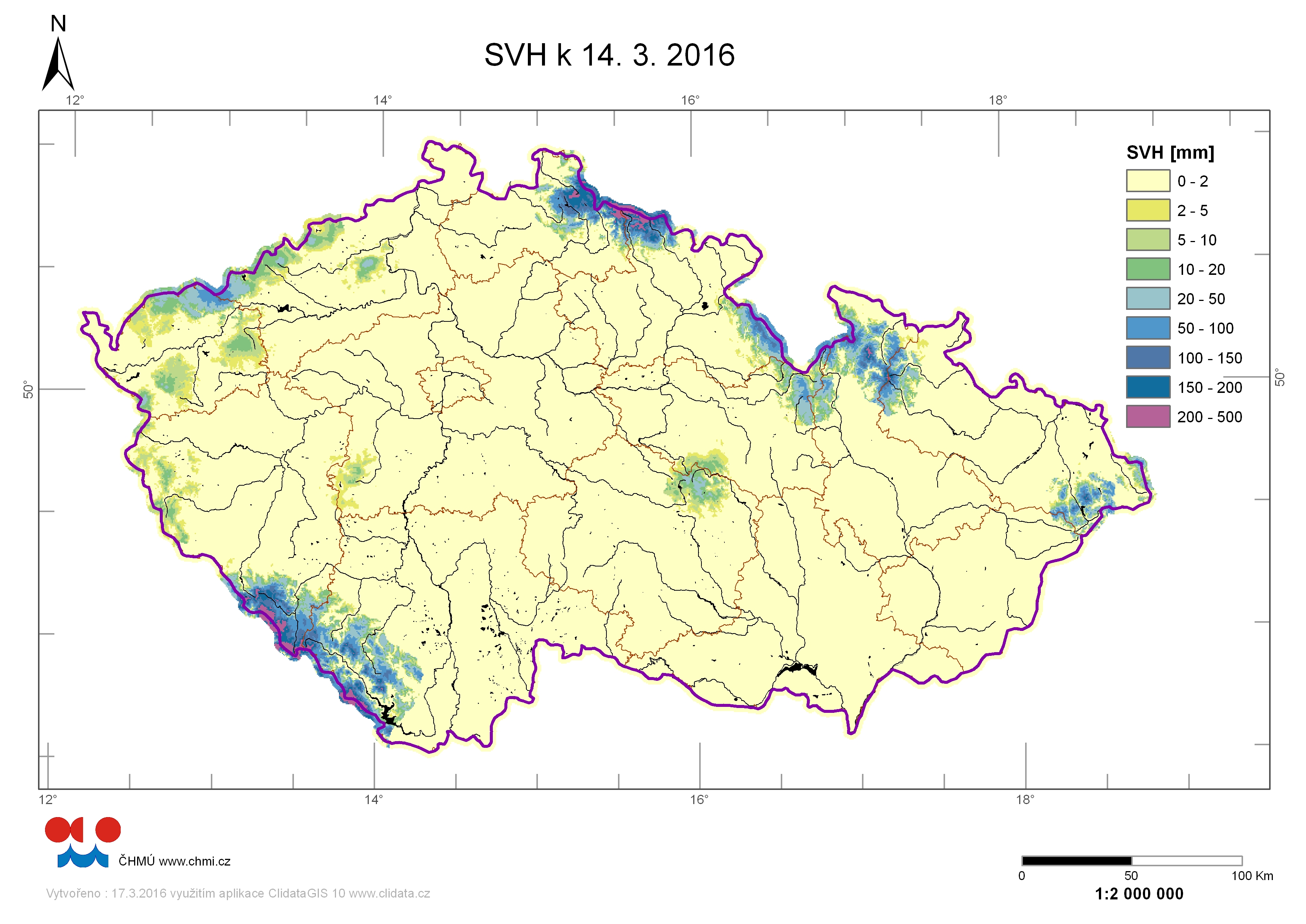 Zásoby vody ve sněhu 15.02.2016 |