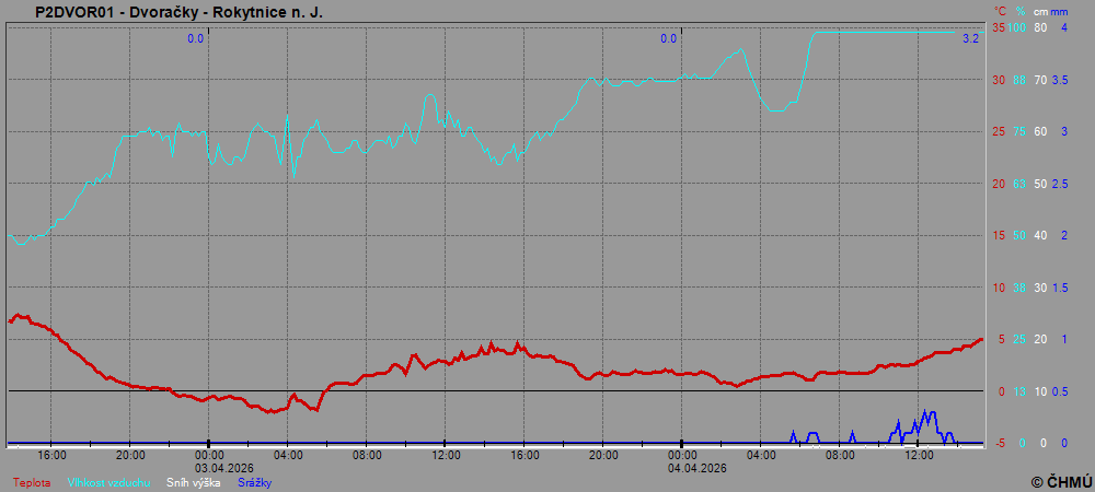 On-line počasí z horských stanic ČHMÚ - Krkonoše. Čas na ose x je udáván v SEČ.