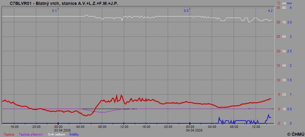 Data ze sněhoměrných polštářů - automatické měření výšky a vodní hodnoty sněhu.