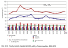 Na dopravních lokalitách jsou měřeny vyšší koncentrace NO2 než na ostatních typech lokalit. V období duben–září je obecně patrný pokles koncentrací NO2 na všech lokalitách (obr. IV.3.4). Důvodem po- klesu je vyšší intenzita solární radiace (především o vlnových délkách < 400 nm) v tomto ročním období, která má za následek fotodisociaci NO2 na NO a O (Warneck 2000). Z produktů fotodisociace se za vhodných podmínek vytváří přízemní ozon, a proto jsou v období duben–září koncentrace přízemního ozonu vyšší (obr. IV.4.3). Velký nárůst průměrné koncentrace NO2 na dopravních lokalitách v srpnu 2015 byl způsoben výjimečně vysokou průměrnou měsíční koncentrací (73,5 μg.m-3) na lokalitě Praha 2-Legerova (hot spot).