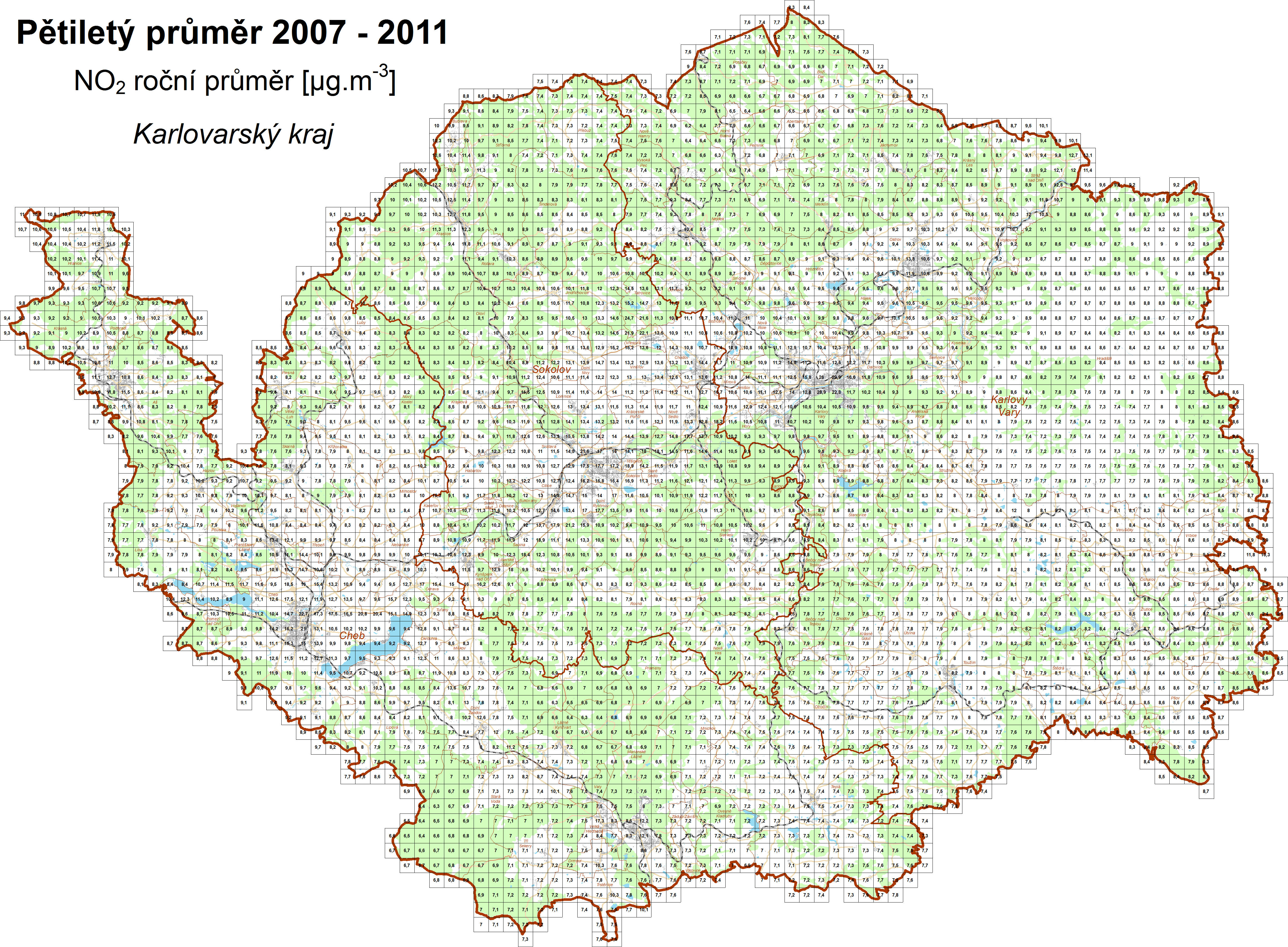 Průměrné koncentrace za roky 2007-2011