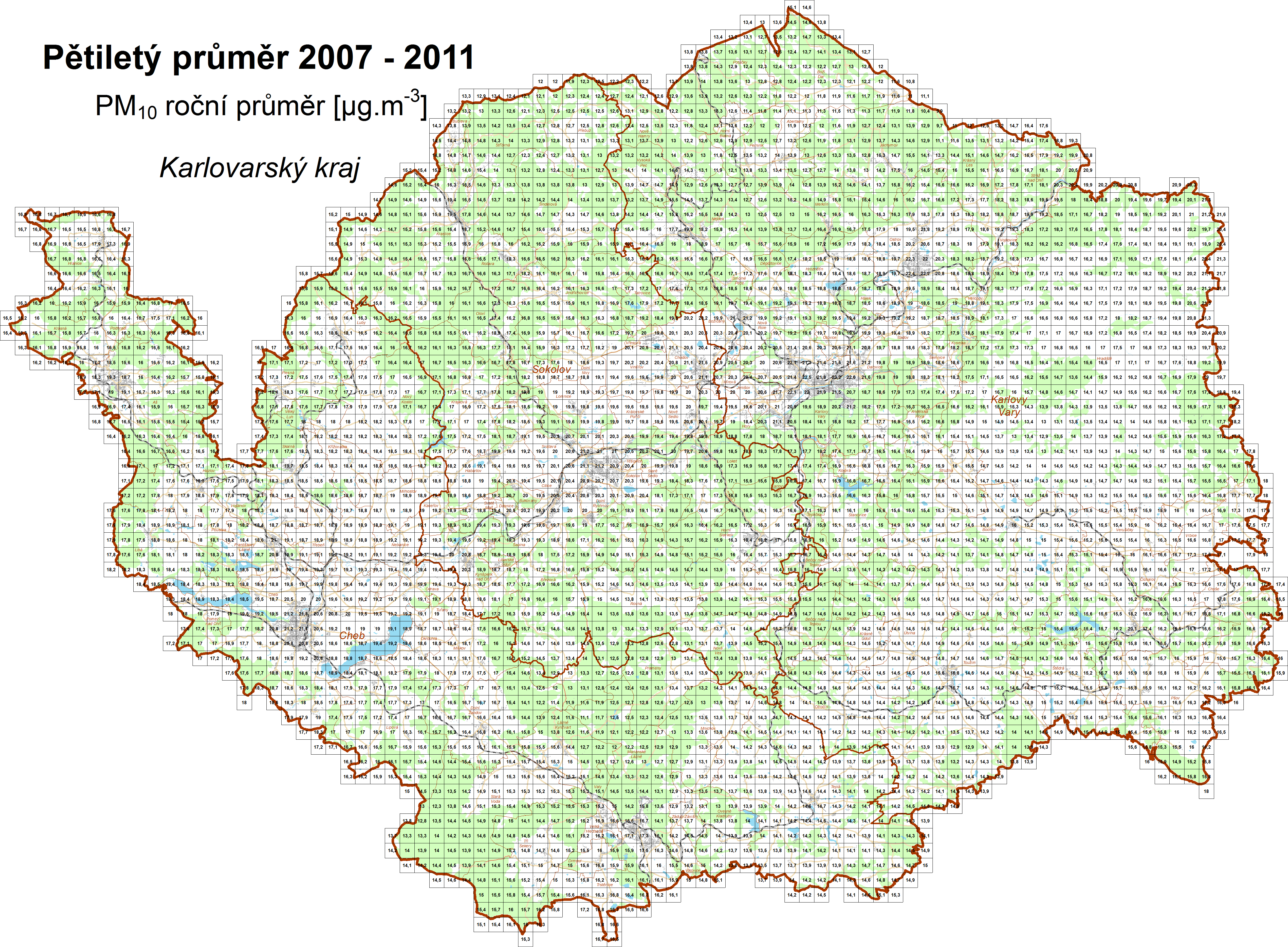 | PM10 | částice PM10, roční průměr |