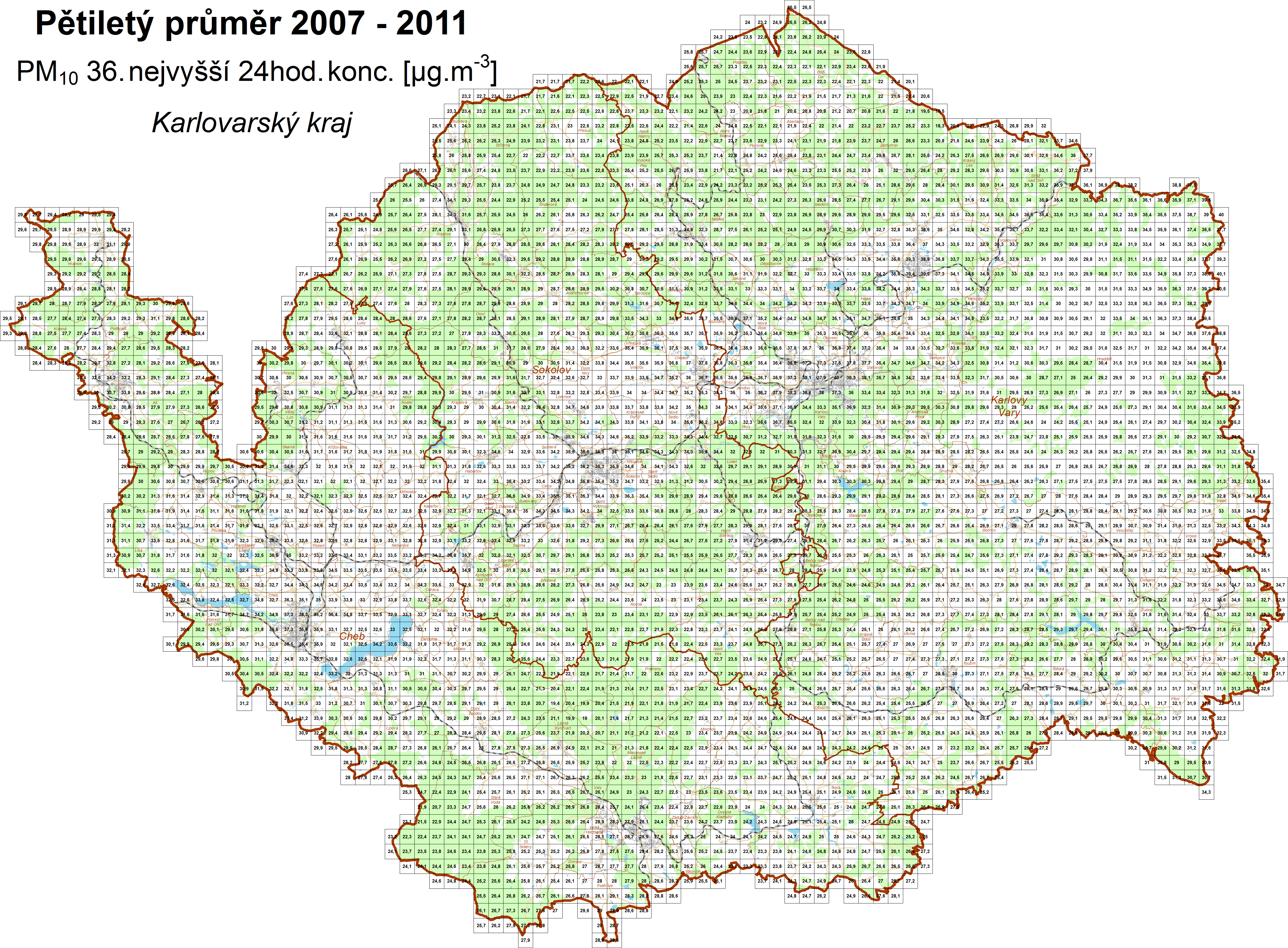 | PM10 - m36 | částice PM10, 36. max. 24hod. průměr |