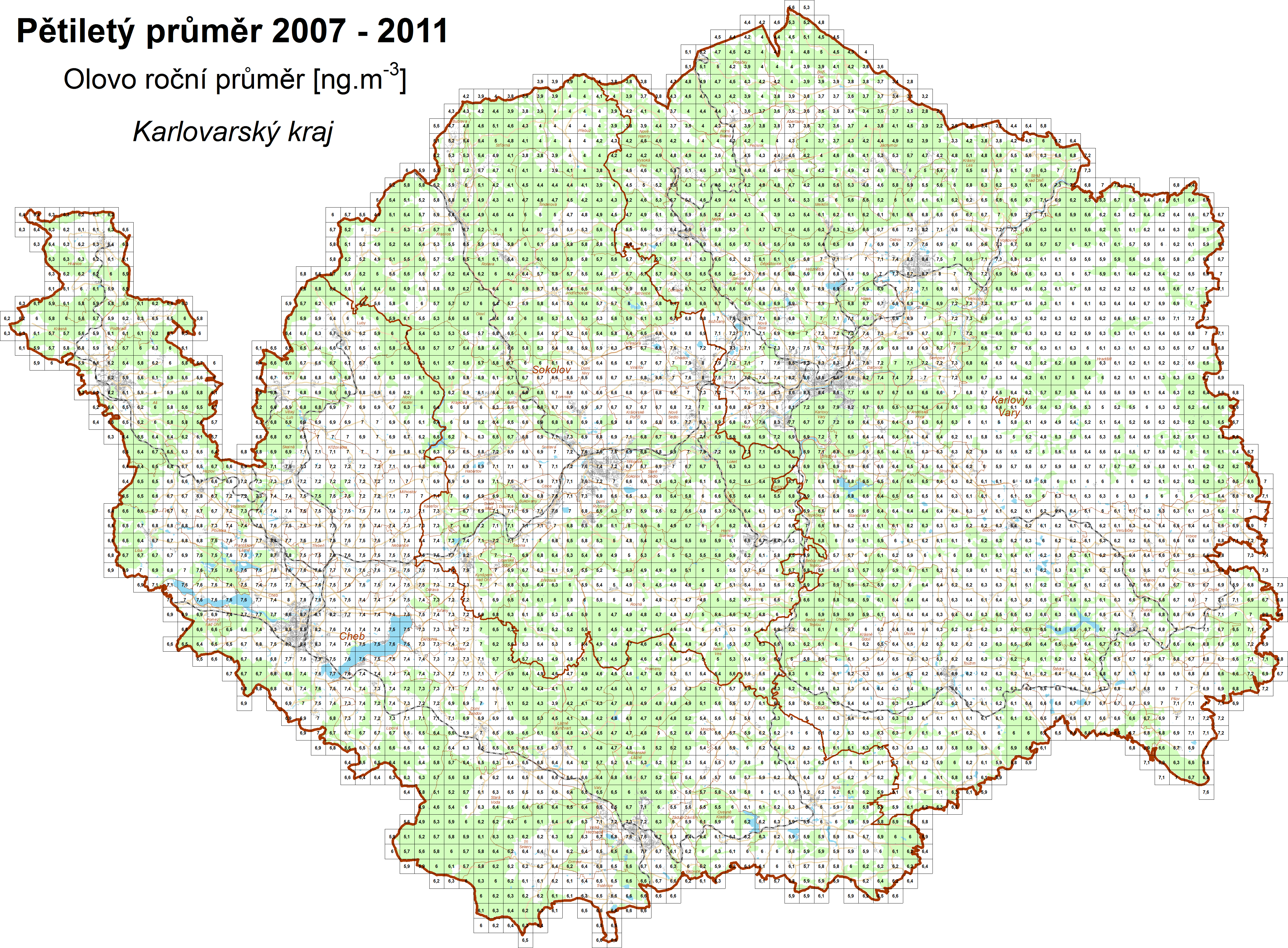 | Pb | olovo, roční průměr |