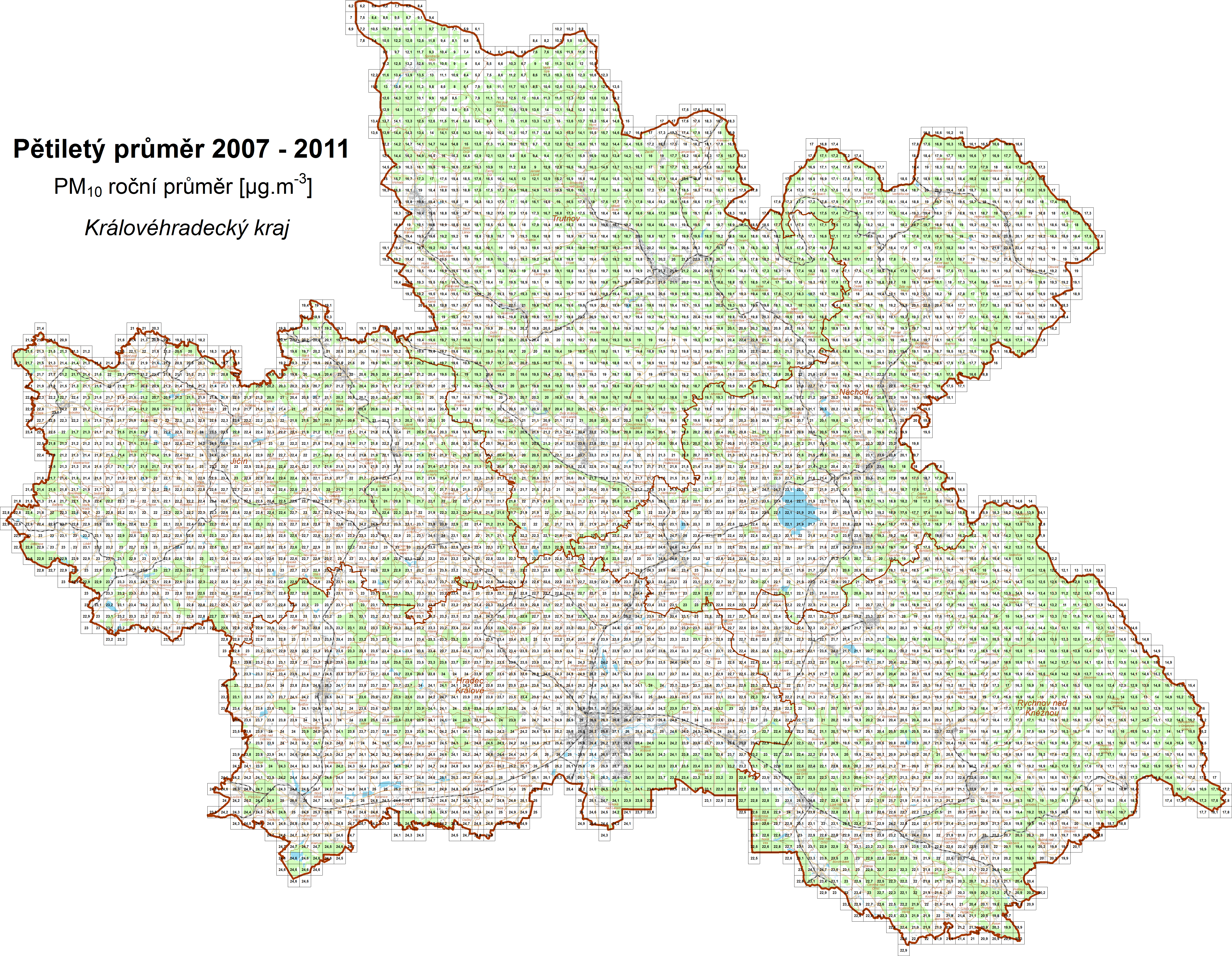 | PM10 | částice PM10, roční průměr |