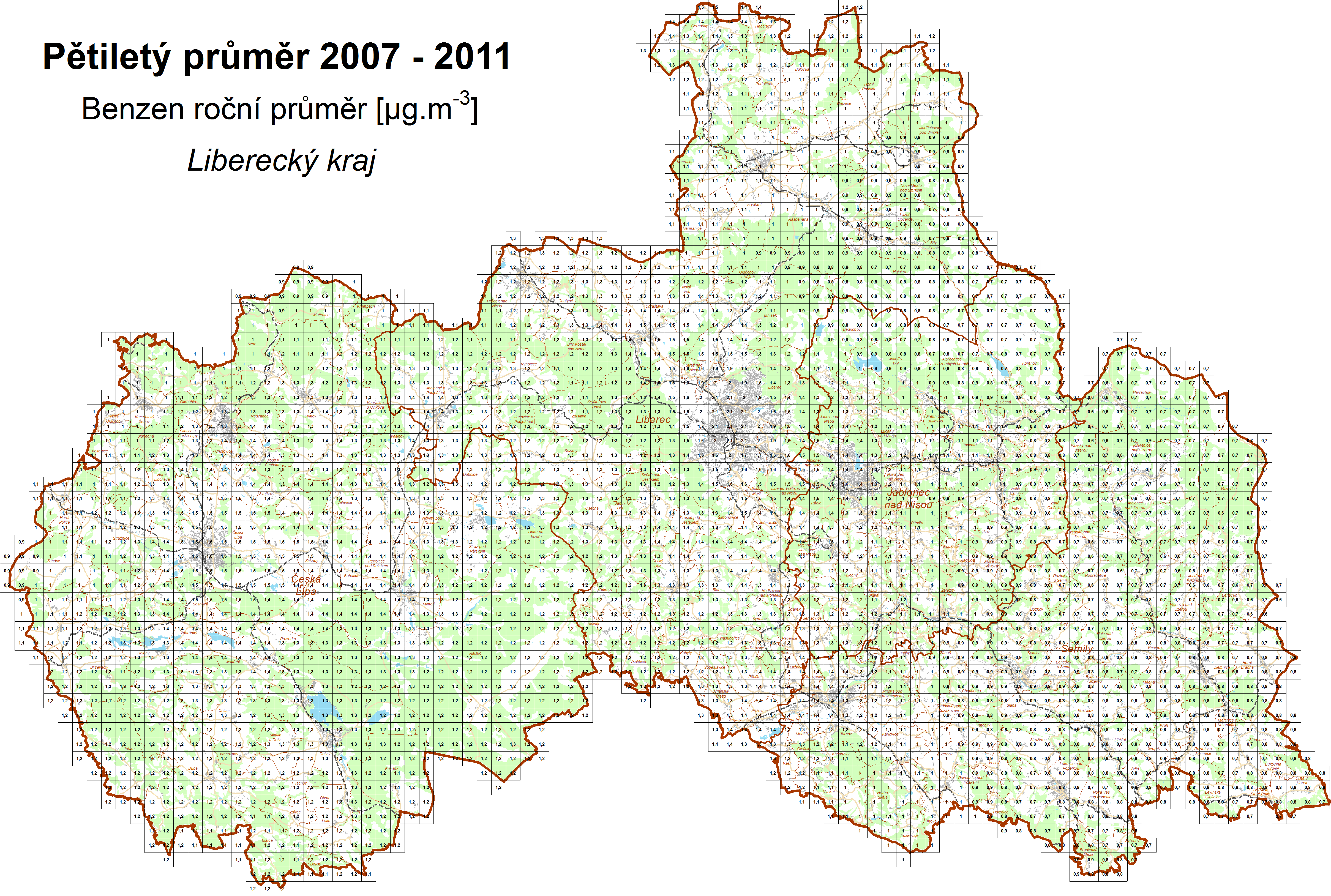 Průměrné koncentrace za roky 2007-2011