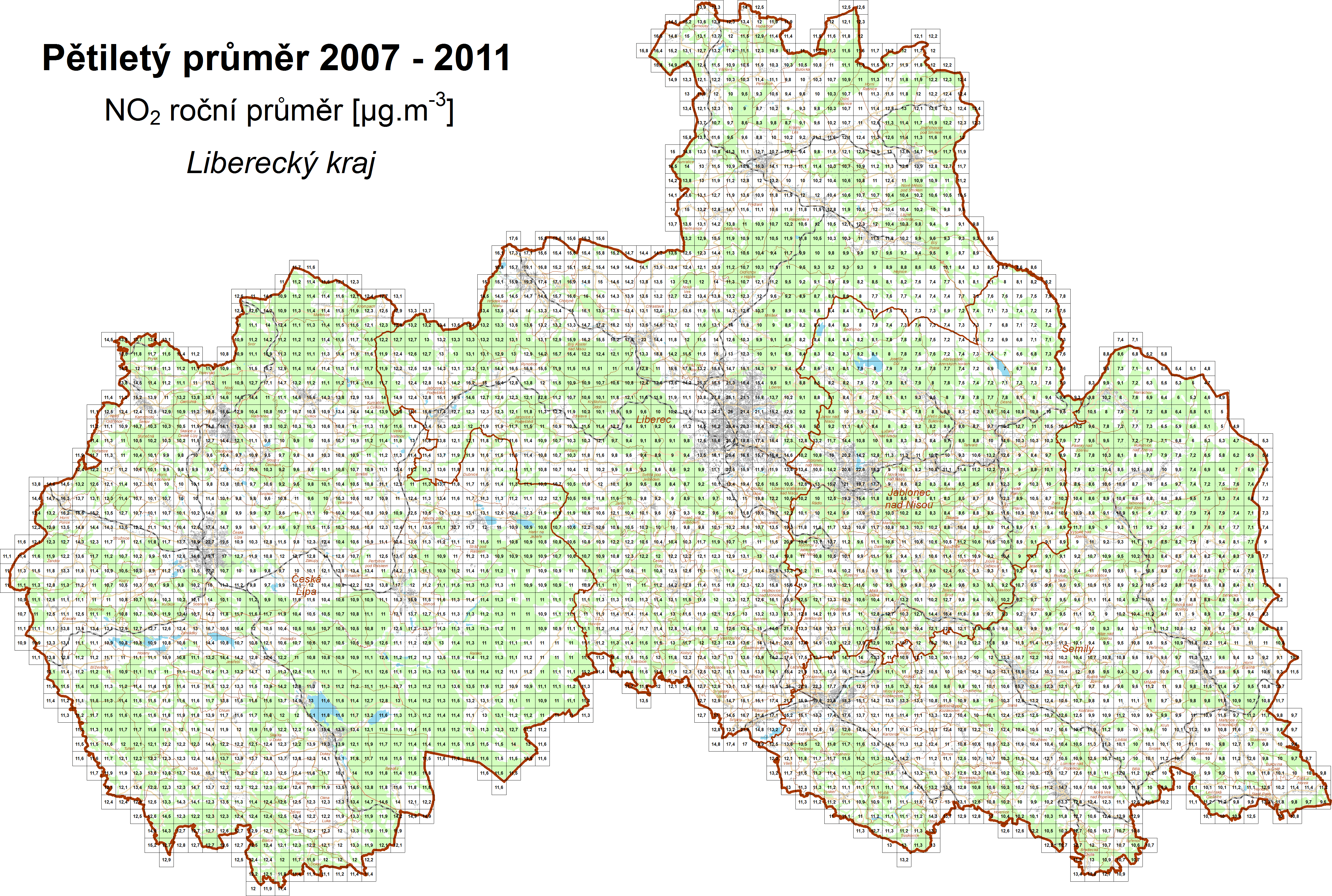 | NO2 | oxid dusičitý, roční průměr |