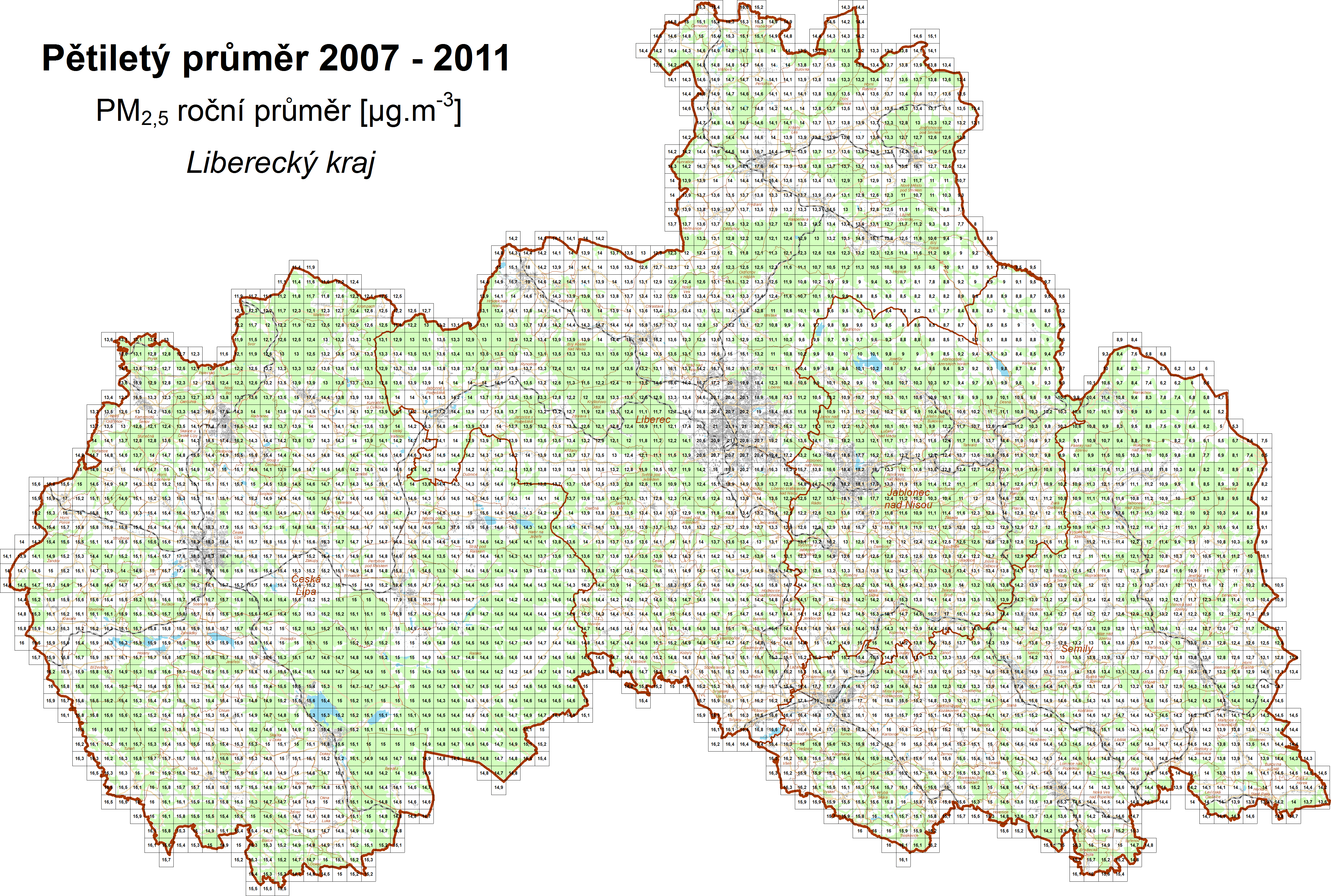 | PM2,5 | jemné částice PM2,5, roční průměr |