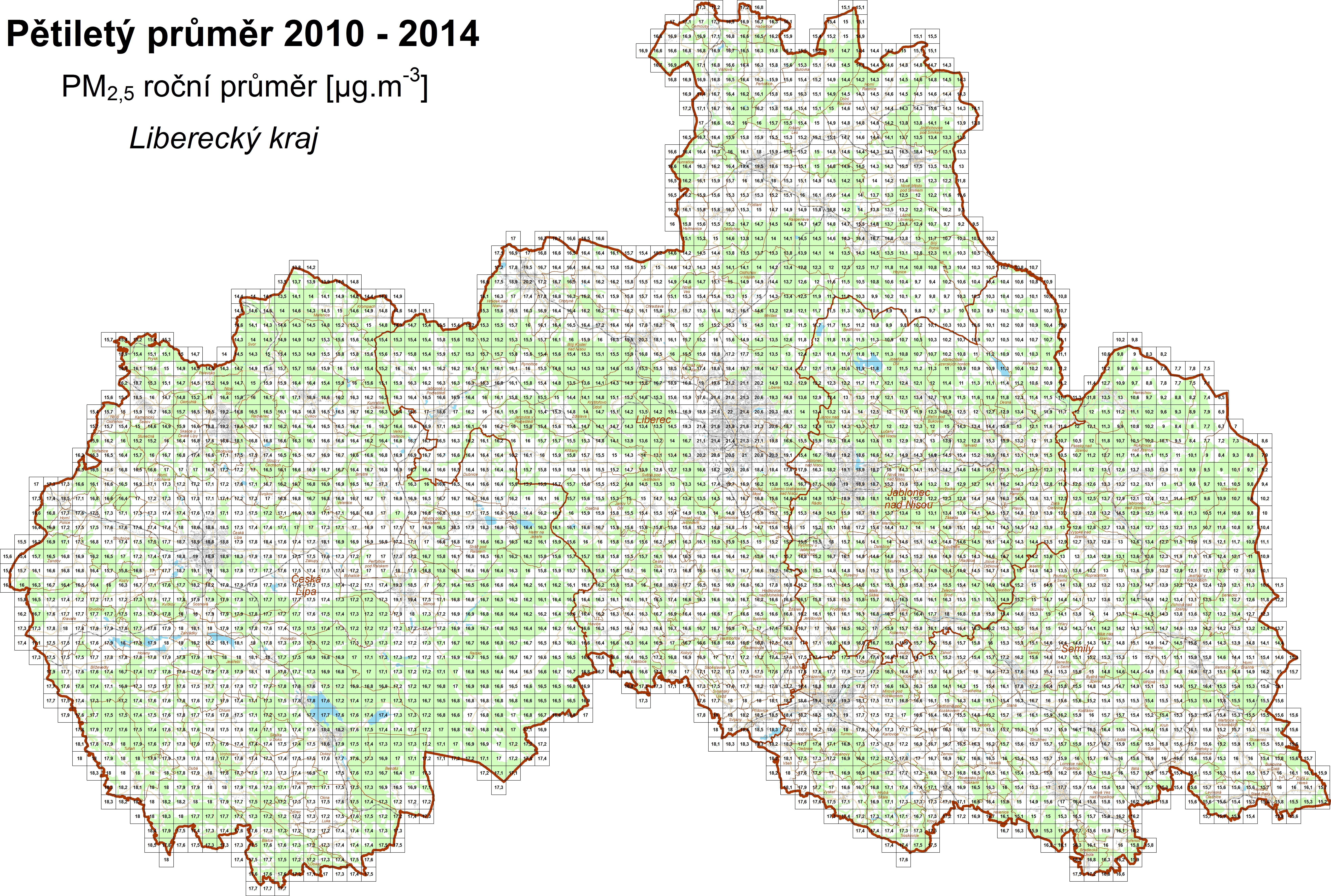 | PM2,5 | jemné částice PM2,5, roční průměr |