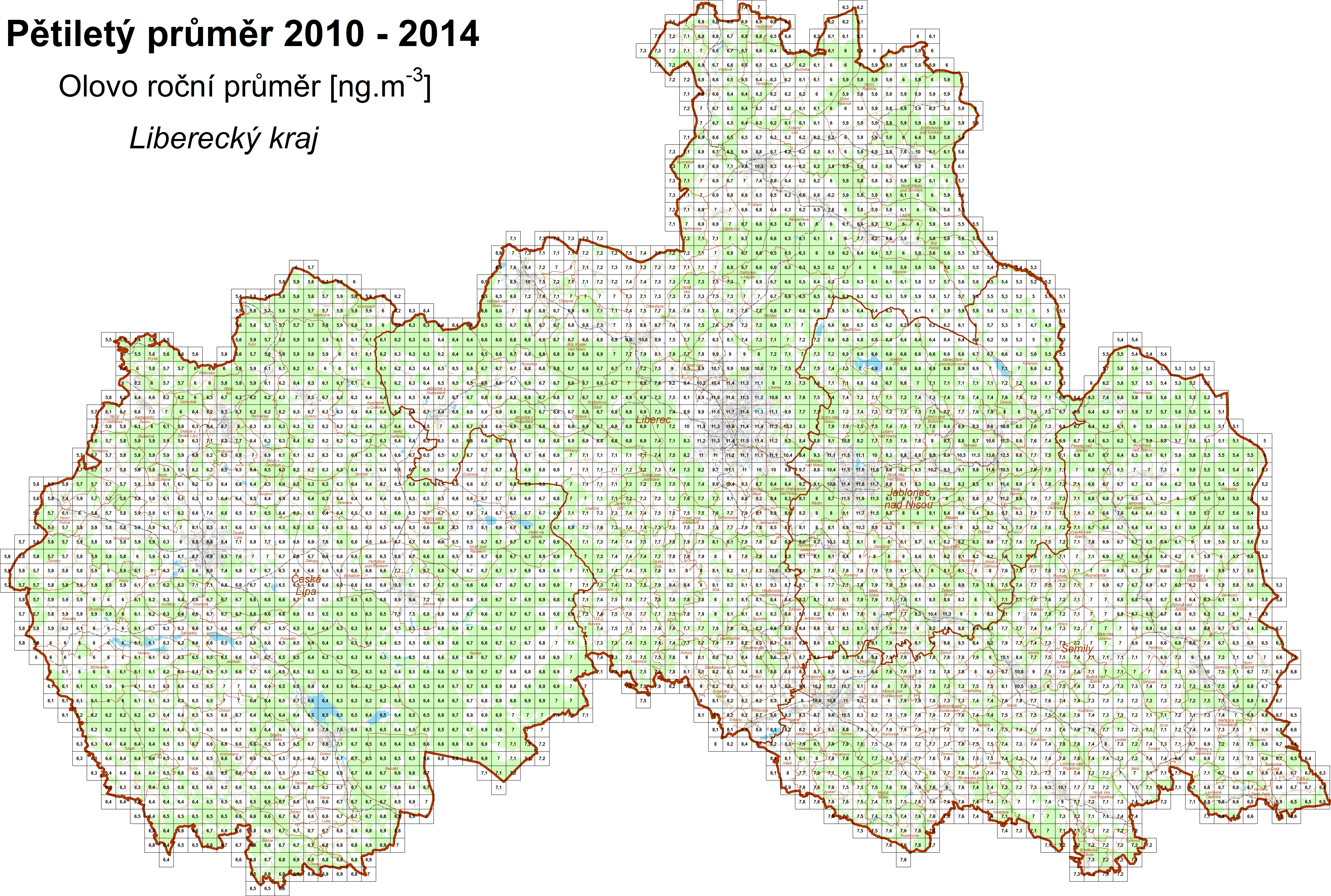 Průměrné koncentrace za roky 2010–2014