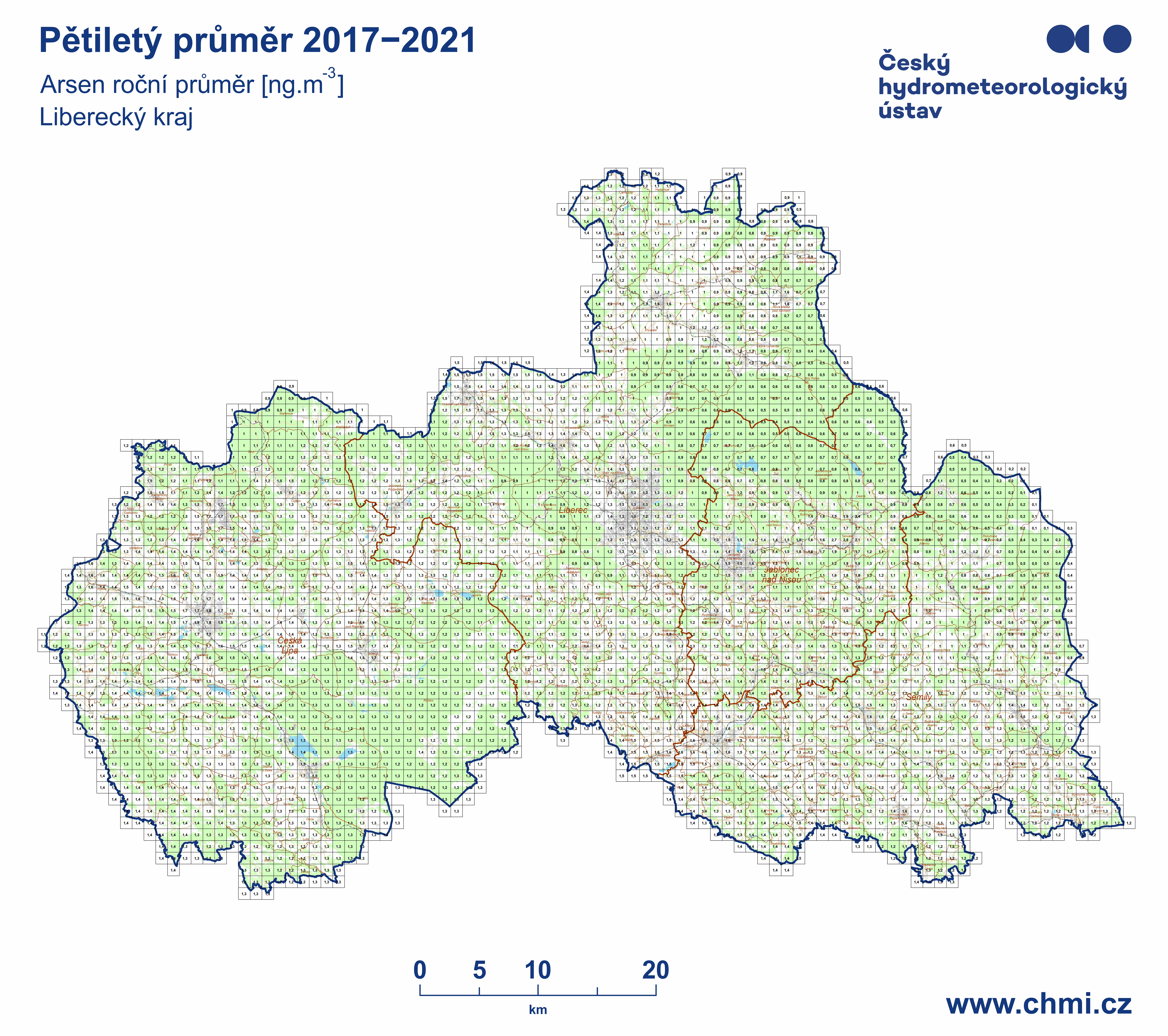 Průměrné koncentrace za roky 2017–2021