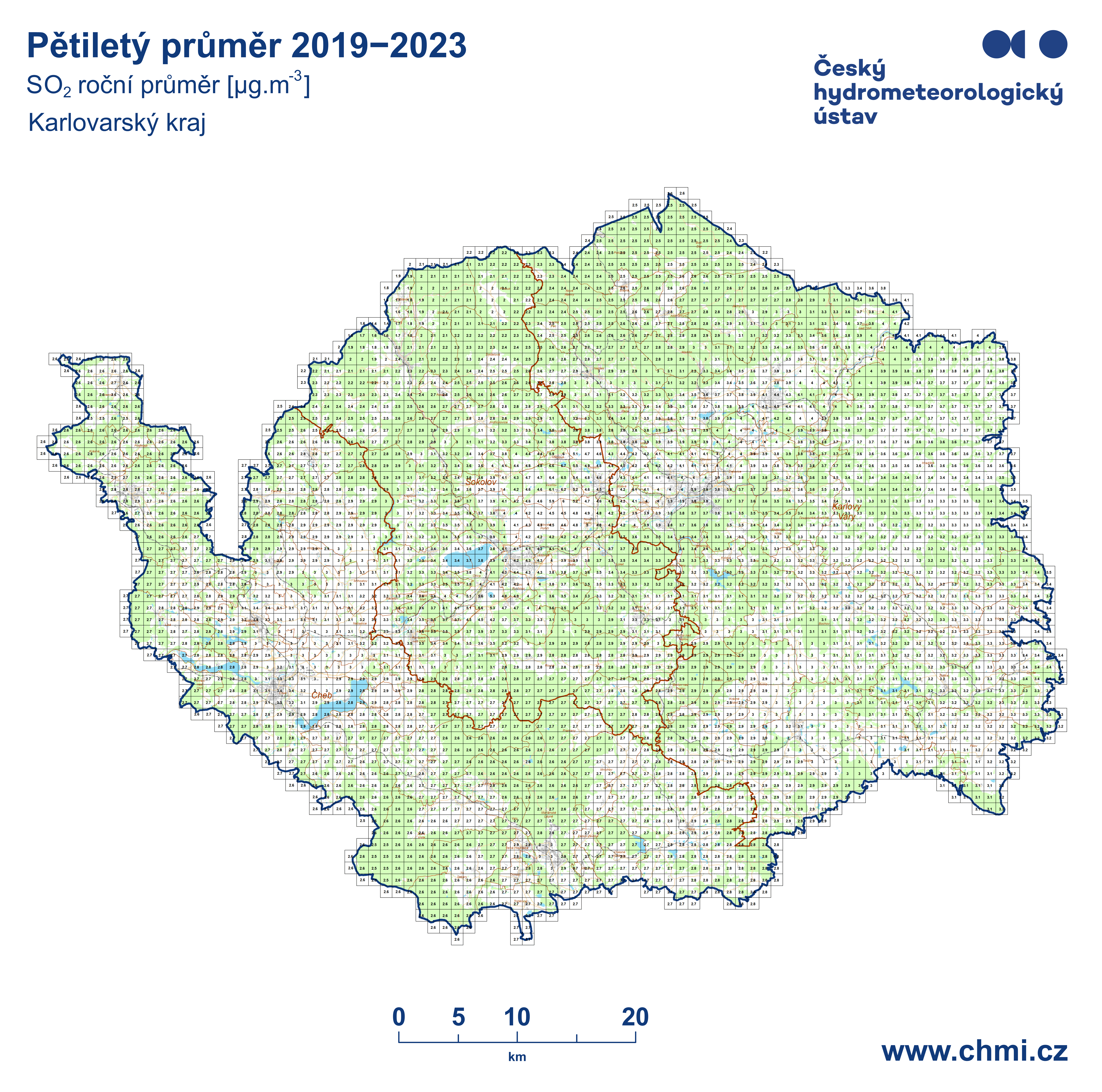 | SO2 - rp | oxid siřičitý, roční průměr |
