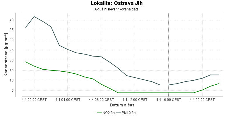 Aktuální naměřené koncentrace znečišťujících látek