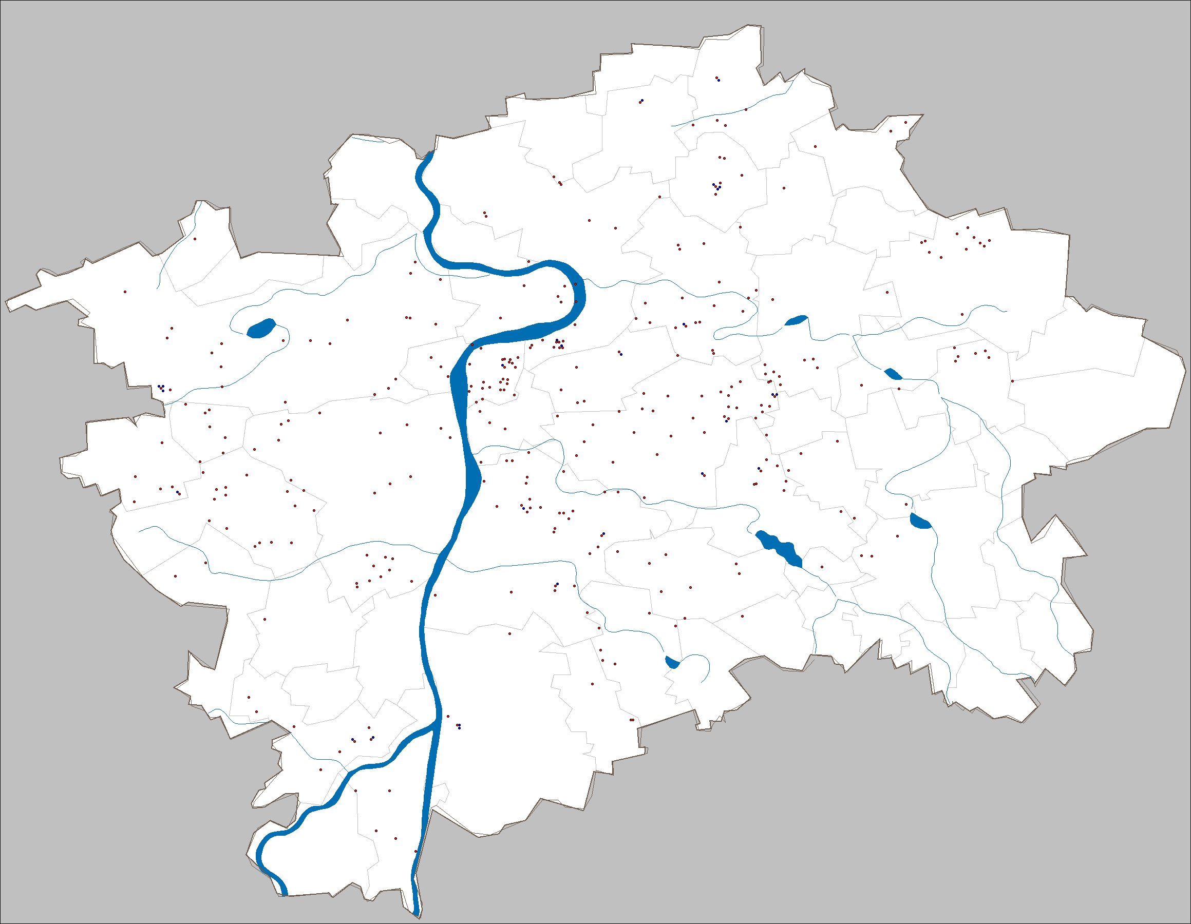 Grafický navigátor vyžaduje JavaScript. Provozovny, které jsou umístěny ve stejné lokalitě a na mapě by se vzájemně překrývaly, jsou označeny bodem s modrou barvou. Jejich skutečné umístění odpovídá souřadnici provozovny s bodem, označeným v místě shluku červenou barvou.